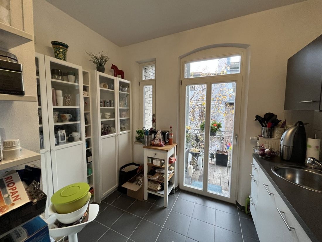 - z. T. aufgearbeitete Originaltüren (Kassettentüren mit Messing-Türdrückern)