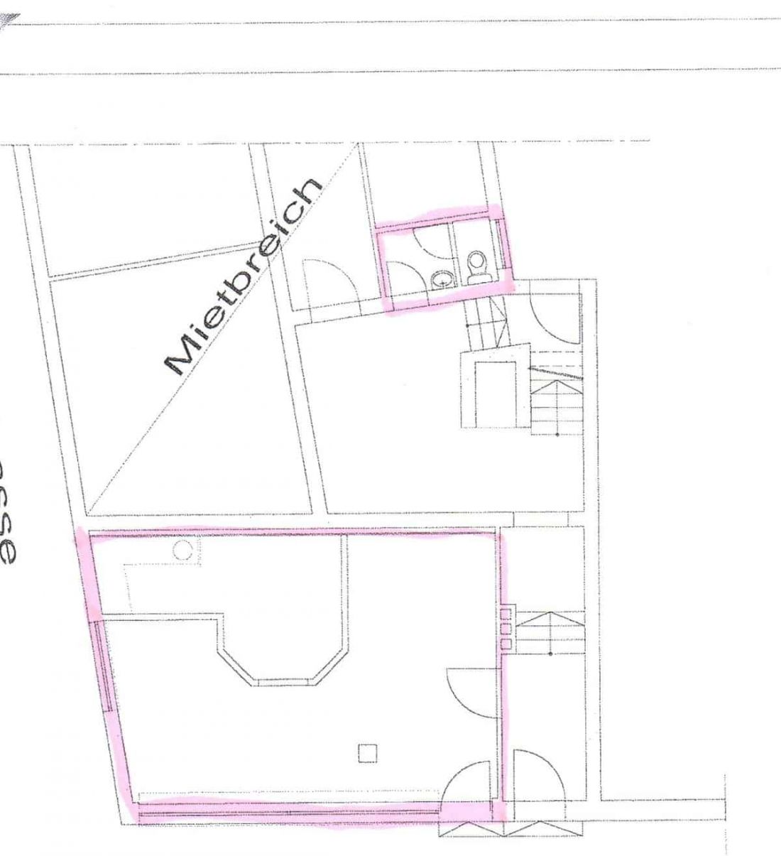 Die Ladenfläche verfügt über ein separates WC (Zugang über Treppenhaus) sowie ein trockenes, nicht einsehbares Kellerabteil.