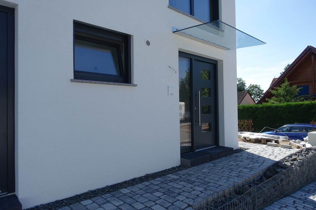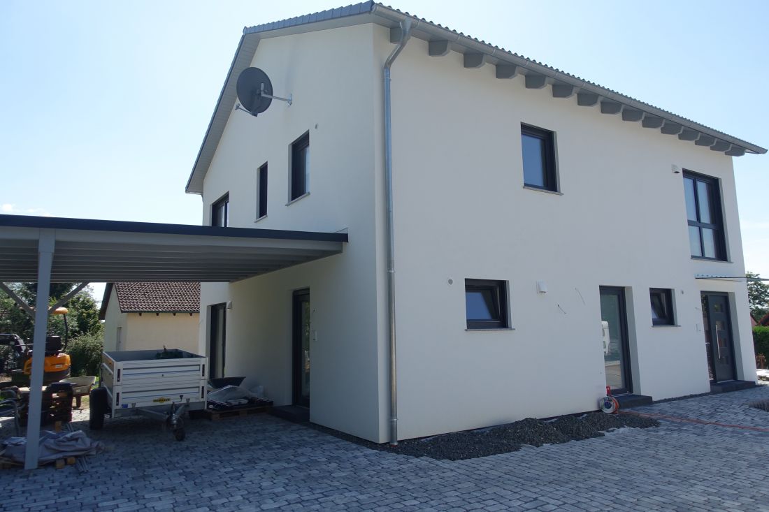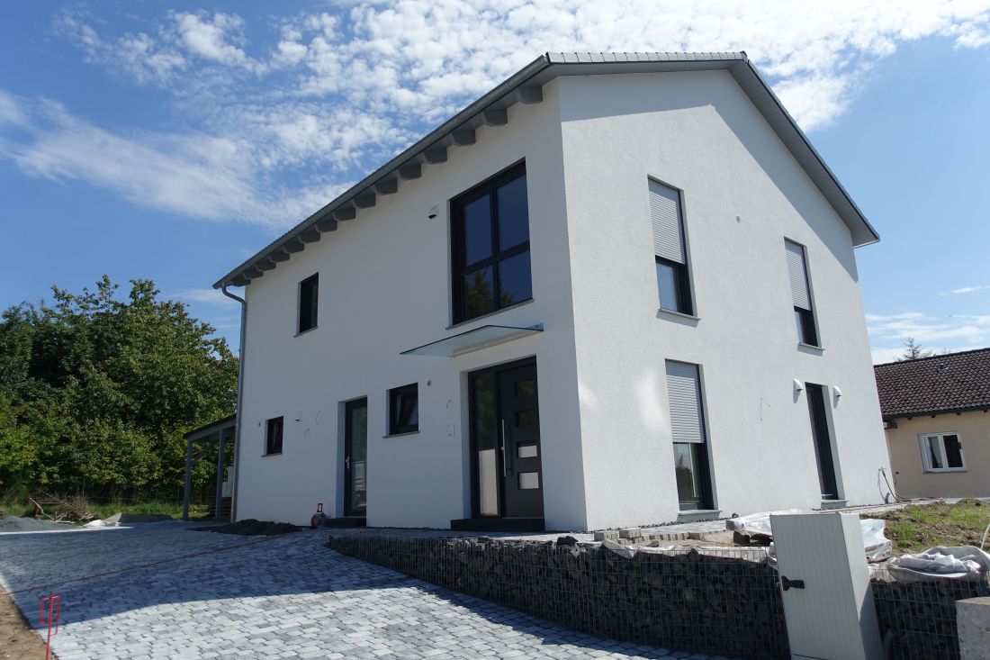 Bei dem vorgestellten Neubau handelt es sich um ein energieeffizientes Wohnhaus mit Einliegerwohnung, welches nach KfW-Standard mit Luftwärmepume konzipiert worden ist.