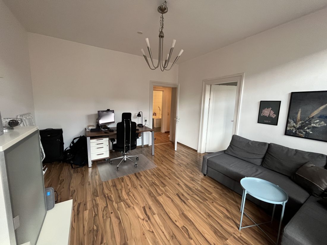 - Bodenbelag: Laminatboden bzw. Fliesen in Bad und Küche