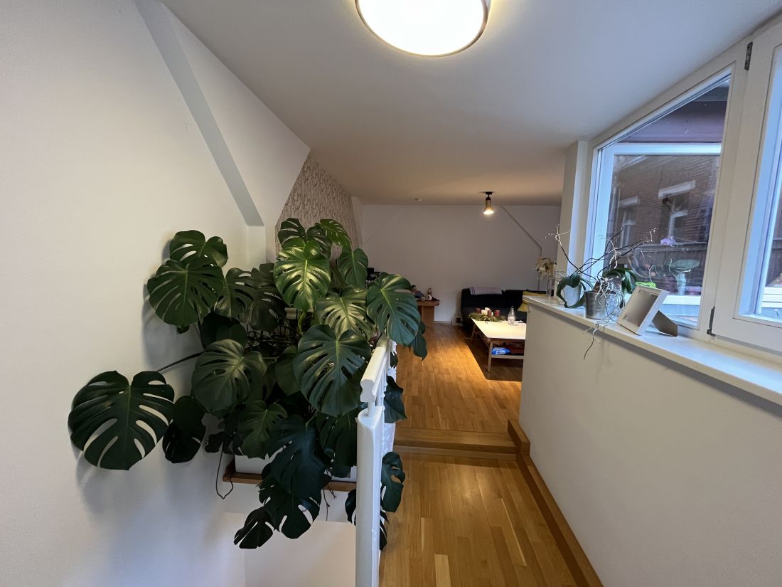 Die Wohnfläche von ca. 110 m² erstreckt sich über Erdgeschoss, Obergeschoss und Dachgeschoss.