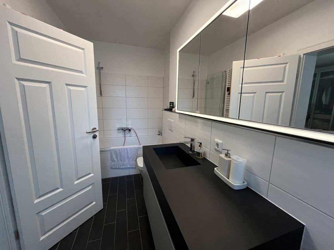 Arbeitszimmer und Schlafzimmer mit daran angrenzendem Tageslichtbad befinden sich im Obergeschoss.