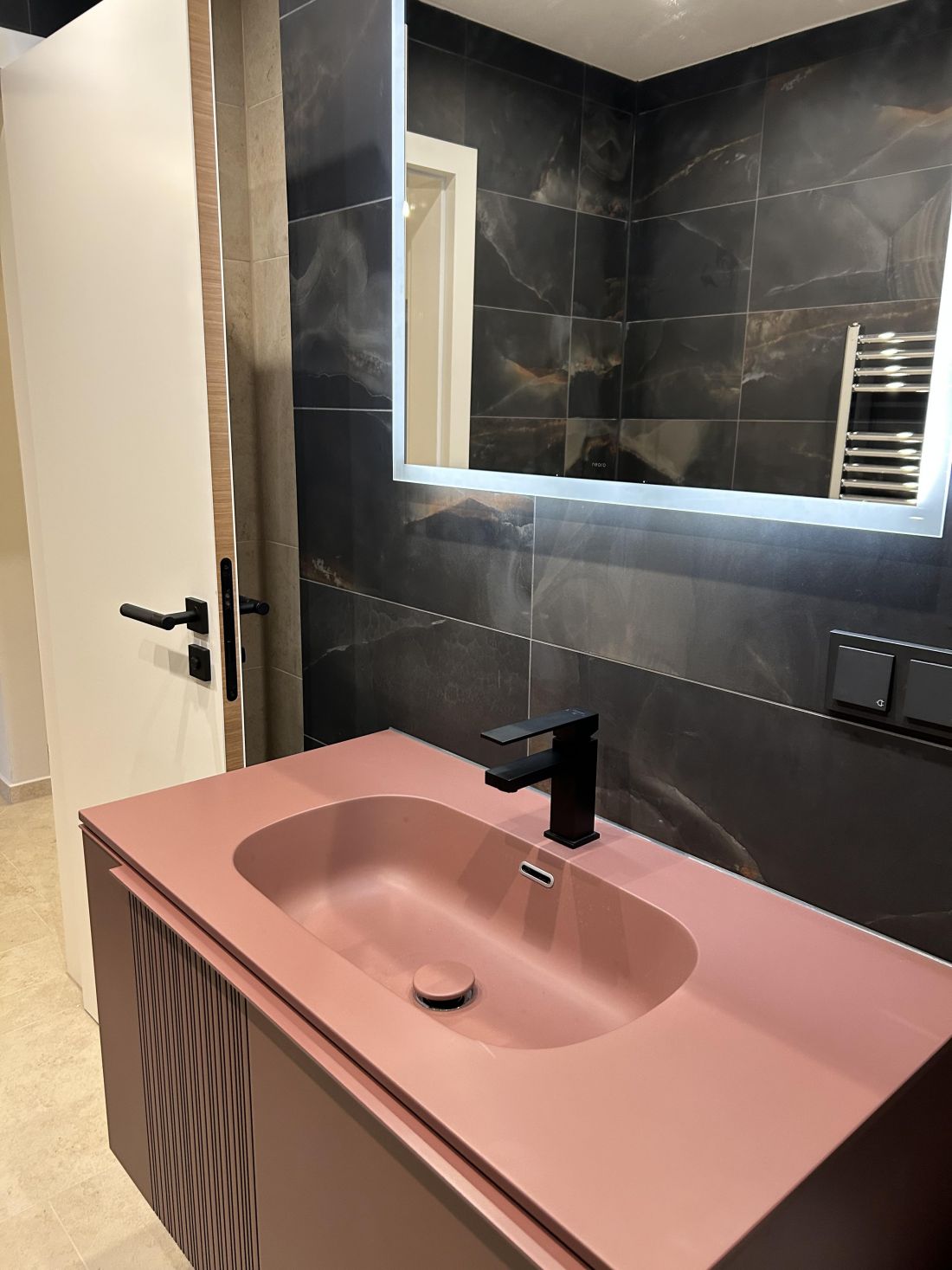 - beleuchteter und beheizter (beschlägt nicht) Badspiegel