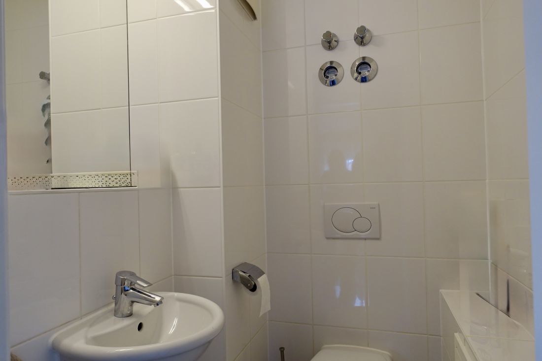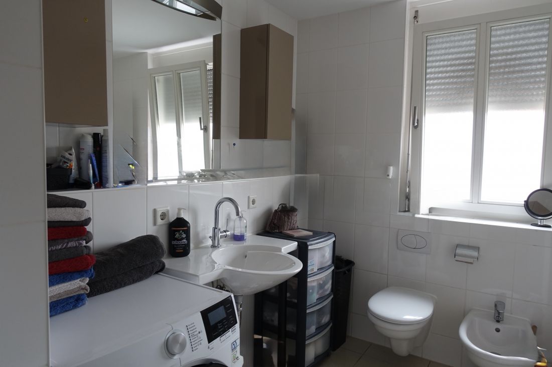 In dem geräumigen Tageslichtbad sind Dusche und Badewanne vorhanden. Ein zusätzliches Gäste-WC existiert in dieser durchdacht geplanten Wohnung selbstverständlich ebenfalls.