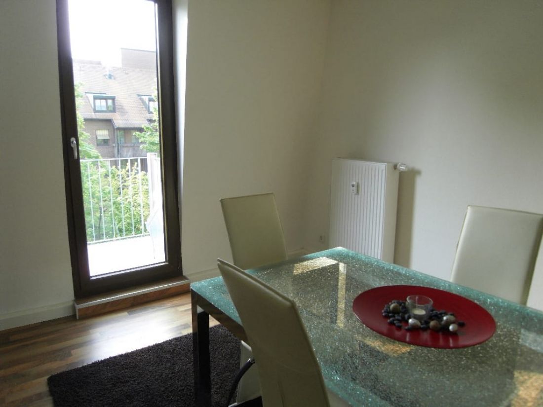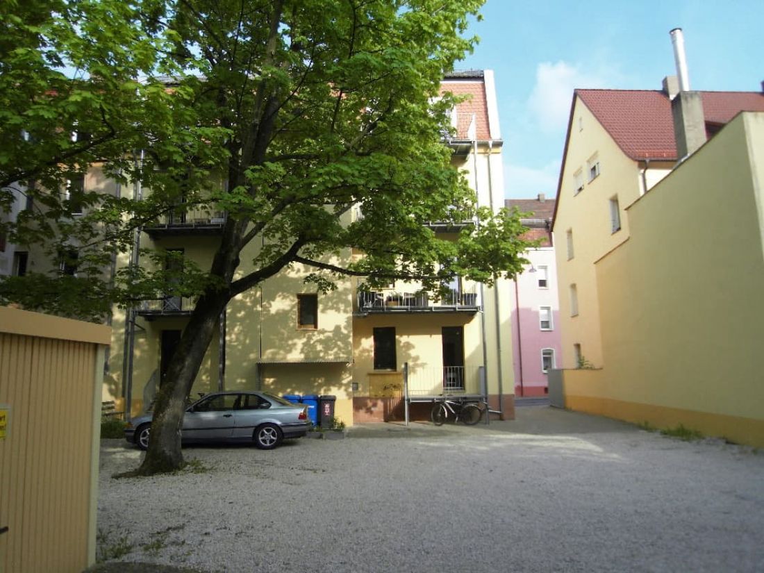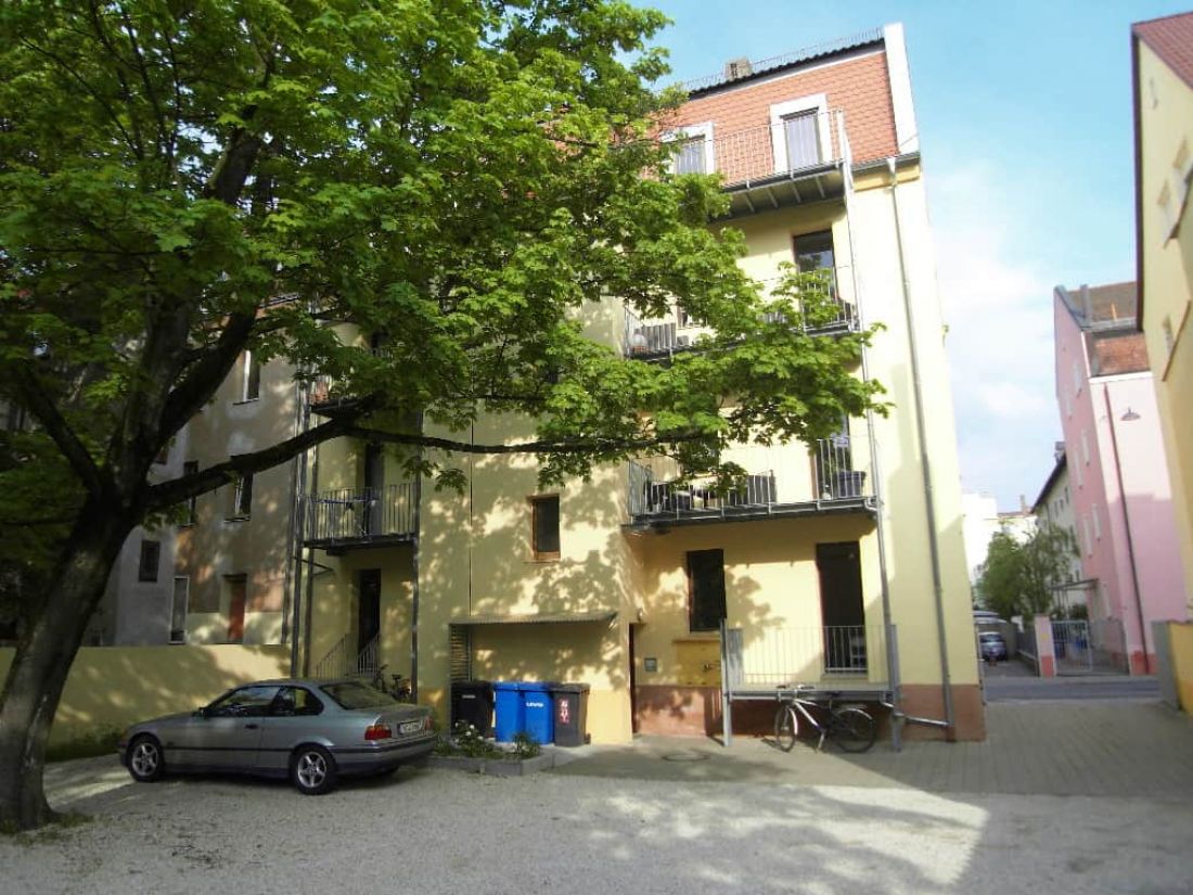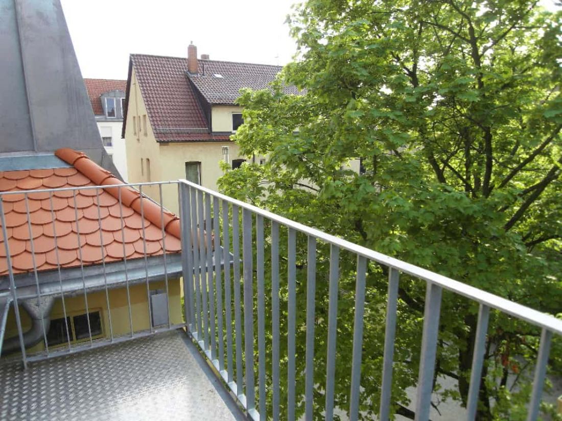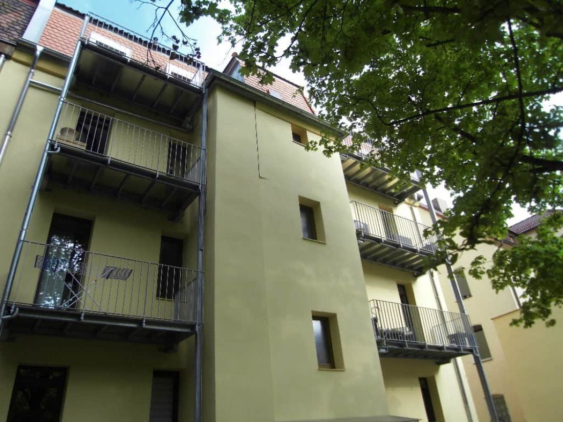 Zutritt zum Balkon in Westausrichtung hat man von der Küche aus, welche Ausblick auf einen großen Hof mit altem Baumbestand und das gegenüberliegende Altenstift bietet.