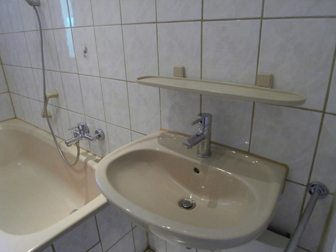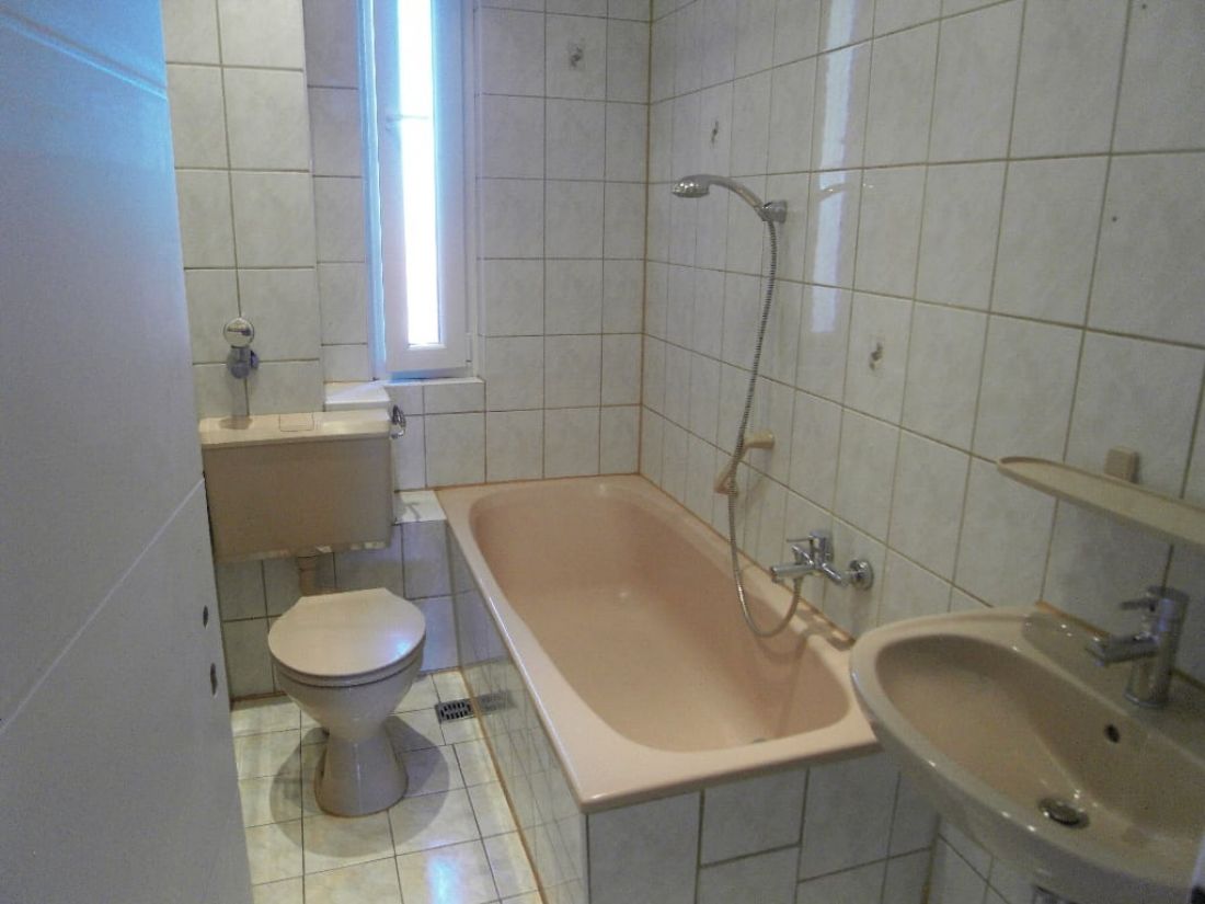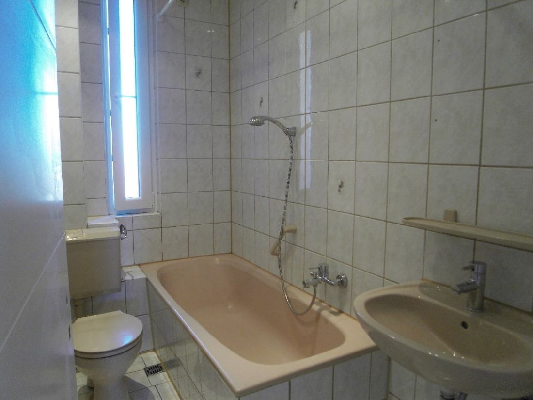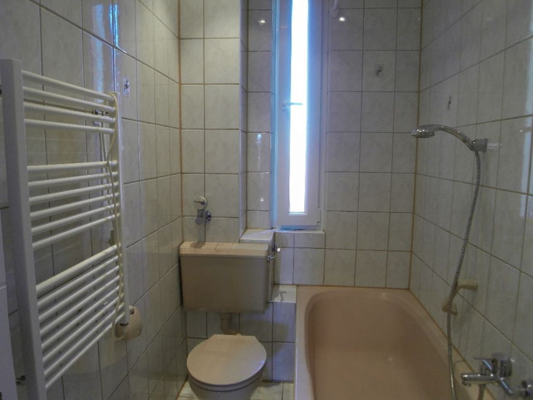 - Bad gefliest mit Fenster und Badewanne, Handtuchtrockner