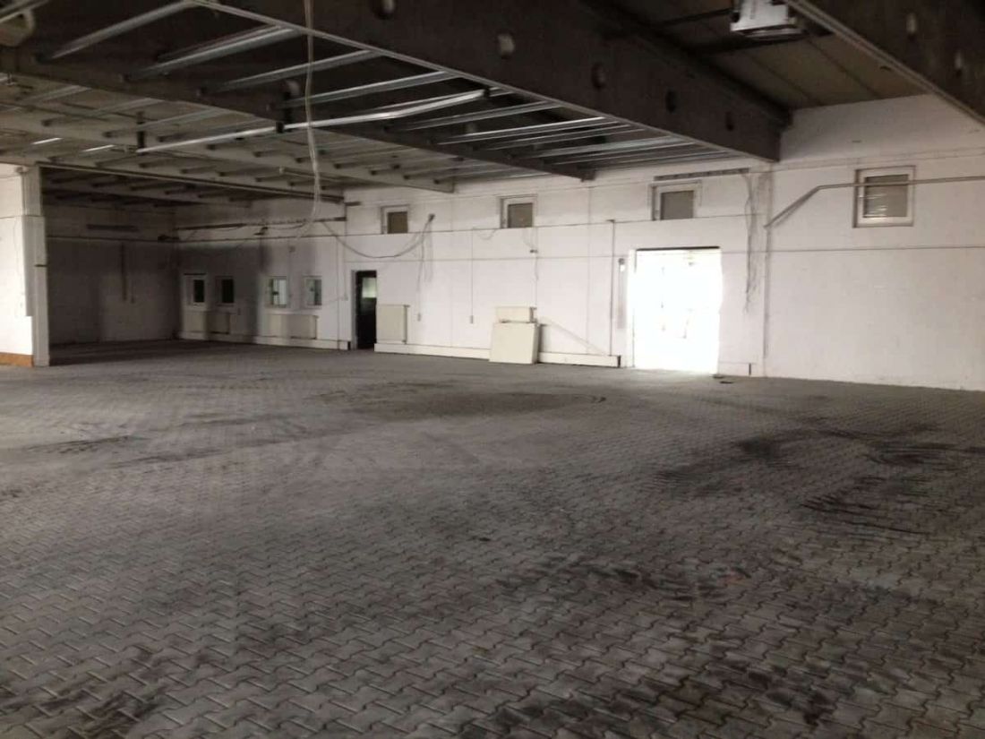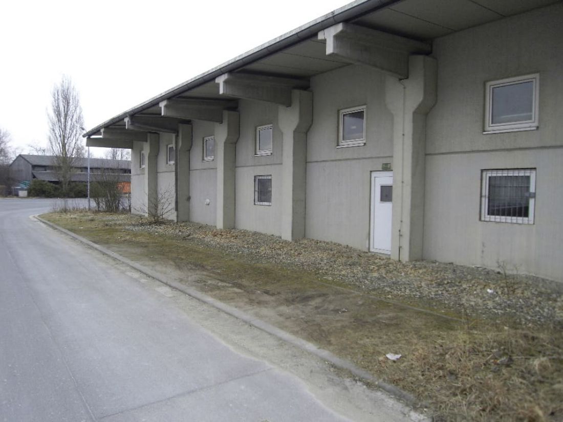 Auf dem Grundstück befindet sich neben der Haupthalle mit Anbau auch ein Paletten-Lager. Die Zufahrten zum Grundstück sowie in die Halle hinein, welche grundsätzlich durchfahrbar wäre, sind für Lkw geeignet – die Halle selbst verfügt über